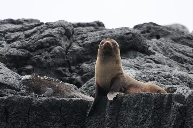 Esa tarde tocaba la visita a la isla Tintorera, islote situado frente al muelle de Isabela al que se llega tras un corto paseo en barca. Me sirvió para ver las primeras marinas y unas cuantas aves nuevas en la isla pero lo mas impresionante fue ver los pelotones de iguanas marinas ya que para combatir el frío y la lluvia es lo que hacen