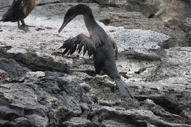 Se quedaron asombradas cuando les dije lo acurrido. Me dijeron que si quería podían cambiarme el programa, quedarme un día mas allí y renunciar a la excursión de Santa Cruz, que al crucero llegaba de sobra saliendo un día mas tarde, pero que antes iban a llamar a los pescadores que son los que mejor saben donde están los cormoranes para saber con seguridad donde podíamos verlos. ¡Claro! con 2000 habitantes en la isla todios se conoce así que sobre la marcha llamaron a un pescador veterano que les dijo que en la playa de los perros 100% seguro que los vería. Llamada a Juancho (el del barco) que sin problema dijo que íbamos y ¡hale! eso si, me dijeron que me preparase para la paliza de barco que me iba a dar. Preocupá me tenía a mi la paliza con el susto que me había llevado. Mas feliz que una perdiz me metí en el catre y soñé con los cormoranes.