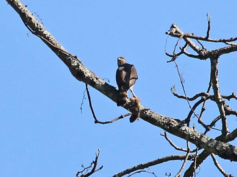 :mrgreen: Por eso puse las advertencias, las fotos son un poco lejanas y no se ven demasiado bien, pero cuando lo vimos (la primera foto es la que está de espaldas), todos debimos pensar que estaba de frente porque cuando se giró se oyó un ¡ohhhh! generalizado. Si te fijas bien en la de perfil se ve el ojito amarillo por la derecha de la foto, asomando justo detrás de la rama que lo tapa y hacia el lado izquierdo "se ve el otro ojo". El muy xodido tiene un buen camuflaje para intimidar.